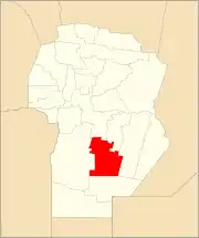 Para los fines catastrales el departamento se divide en 4 pedanías: Carlota, Carnerillo, Chucul y Reducción.