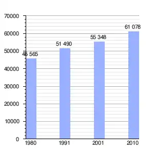 Según el INDEC en 2010 tiene 61.078 habitantes.