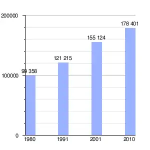 Gráfica de evolución demográfica de Departamento Punilla entre 1980 y 2010 |