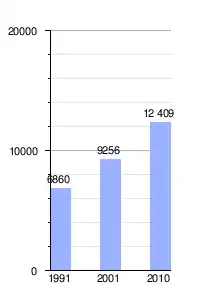 Gráfica de evolución demográfica de Departamento Toay entre 1991 y 2010 |