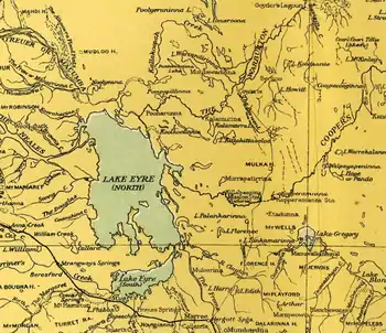 En una expedición realizada en 1866 para determinar el límite septentrional del lago Eyre, Peter Egerton Warburton se aproximó al desierto desde el oeste y siguió la corriente del río que ahora es conocido con el nombre de río Warburton, pero que él creyó incorrectamente que era el Cooper Creek.[16] En 1874 otra expedición liderada por James William Lewis, siguió nuevamente el curso del río hasta el borde Queensland, volvieron a trazar la ruta en el camino de vuelta y se encaminaron hacia el sur, a la misión de Kopperamanna.[16] A continuación, siguieron el curso del Cooper Creek con el fin de inspeccionar la costa este del lago Eyre.[16] Lewis, después de la expedición, dijo acerca del lago: "Sinceramente creo que podría no verlo nunca más; es inútil en todos los aspectos, y su sola visión produce sed tanto en los hombres como en las bestias".[17][16]