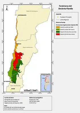 El desierto florido es un fenómeno que se produce en el desierto de Atacama (Chile), el más árido del planeta,[1][2][3][4][5][n 1] y consiste en la aparición de una gran diversidad de flores en aquellos años en que las precipitaciones son inusuales y superan el rango normal para el desierto. Es similar al fenómeno de lomas costeras, el cual se da a lo largo de la costa desértica de Chile y Perú.