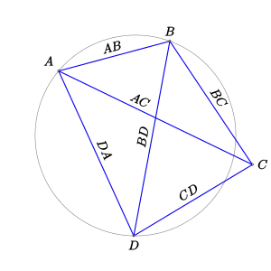 - Silvester, John R. (2001), «Proposition 9.10 (Ptolemy's theorem)», Geometry: Ancient and Modern, Oxford University Press, p. 229, ISBN 9780198508250..
