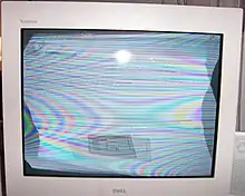Para minimizar este efecto, a los TRC se les instaló una bobina de cobre, o con frecuencia en el caso de electrodomésticos más baratos, de aluminio, enrollados alrededor de la parte frontal de la pantalla, conocida como la «bobina de desmagnetización». Los monitores sin una bobina interna se pueden desmagnetizar utilizando una versión de mano externa. Las bobinas de desmagnetización internas en los TRC son generalmente mucho más débiles que las bobinas de desmagnetización externas, ya que una bobina de desmagnetización mejor ocupa más espacio. Un degauss causa que un campo magnético dentro del tubo oscile rápidamente, con una amplitud decreciente. Esto deja a la máscara de sombra con un campo pequeño y algo aleatorizado, eliminando la decoloración.