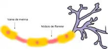 La importancia física de la mielina radica en que funciona como aislante eléctrico. Esta característica permite ahorrar energía a la célula ya que la excitación activa solo se produce en los nódulos de Ranvier; y también permite aumentar la velocidad de transmisión de la señal, ya que el potencial de acción se propaga saltando de un nódulo de Ranvier a otro (conducción saltatoria).[8]