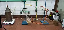 A escala de laboratorio, las destilaciones de vapor se llevan a cabo utilizando vapor generado fuera del sistema y se canalizan a través de biomasa macerada o se genera vapor in situ utilizando un aparato de tipo Clevenger.[6]