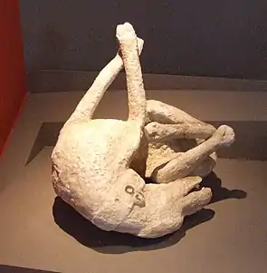 No fue sino hasta 1863 que el excavador Giuseppe Fiorelli tuvo la idea de echar yeso en el hueco dejado al interior del cubrimiento de lapilli y cenizas, fruto de la descomposición de los cuerpos, de modo que una vez retirado los materiales volcánicos, el moldeo hacía posible visualizar la posición en la que la muerte había sorprendido a la víctima; así se esperaba poder comprender los últimos esfuerzos hechos por ese ser (humano, perro …) para evitar la asfixia, por ejemplo, cubriendo su cara con un tejido, o protegiendo su cabeza de alguna forma, etc.