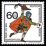 Los primeros sellos se emitieron como "Deutsche Post", en 1952 la inscripción se cambió a "Deutsche Post Berlin" y tres años después a "Deutsche Bundespost Berlin".[8] Muchos sellos tenían el mismo aspecto que los sellos de la República Federal de Alemania con solo cambiar la inscripción, mientras que otros eran claramente diferentes.