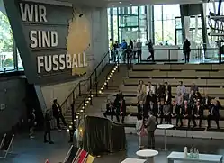 En febrero de 2017, por ejemplo, el entrenador de fútbol Thomas Tuchel filosofó con el estudioso de humanidades Hans Ulrich Gumbrecht sobre la belleza del juego.[12] Desde la temporada 2017-18, los sorteos de Copa de Alemania también se han realizado el domingo después de la respectiva ronda de la copa a partir de las 18:00 horas en el museo del fútbol y se mostrarán vivir en la transferencia Sportschau.[13] En 2018, como parte de la celebración de los cuarenta años de hermanamiento entre Dortmund y Rostov del Don, el Dortmund / Rostow-Rhino, otro de los Rinoceronte alado fue presentado en el Museo del Fútbol Alemán Copa Mundial de Fútbol de 2018 se instalará en la plaza Rostov del Don.[14]