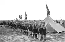 El Deutsches Jungvolk fue fundada en 1928 por Kurt Gruber con el título de Jungmannschaften ("Equipos Juveniles"), pero pasó a llamarse Knabenschaft y finalmente a Deutsches Jungvolk in der Hitler Jugend en marzo de 1931.[1] Tanto el Deutsches Jungvolk (DJ o DJV) como las Hitlerjugend (HJ) modeló partes de su uniforme y programa de las asociaciones de Scout alemanas y otros grupos de jóvenes,[2] que luego fueron prohibidos por el gobierno nazi durante 1933 y 1934.[3]