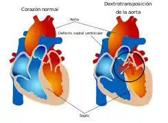 ![]() Diagrama de un corazón normal y otro sufriendo una dextraposición de la aorta. | ||