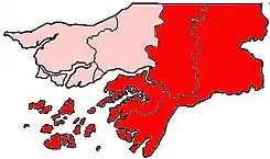 La diócesis tiene 11 495 km² y extiende su jurisdicción sobre los fieles católicos de rito latino residentes en las regiones de Gabú, Bafatá, Quinara, Tombali y Bolama.