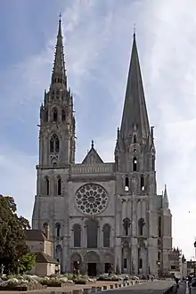 Chartres, durante la edad media fue sede de una importante escuela de estudios filosóficos y teológicos, surgida en el siglo XI por iniciativa del obispo Fulberto, que contó con grandes personajes de la historia de la Iglesia, entre sus profesores, tales como: Guillermo de Conches, Gilberto Porretano, Juan de Salisbury, Ivón y Bernardo de Chartres. La catedral, por su parte, fue construida entre los siglos XII y XIII. Fue consagrada el 17 de octubre de 1279. Templo gótico, famoso porque en él fue consagrado rey Enrique IV de Francia.[2]