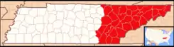 La diócesis tiene 36 872 km² y extiende su jurisdicción sobre los fieles católicos de rito latino residentes en 23 condados del estado de Tennessee: Anderson, Bledsoe, Blount, Bradley, Campbell, Carter, Claiborne, Cocke, Cumberland, Fentress, Grainger, Greene, Hamblen, Hamilton, Hancock, Hawkins, Jefferson, Johnson, Knox, Meigs, Pickett, Unicoi y Union.