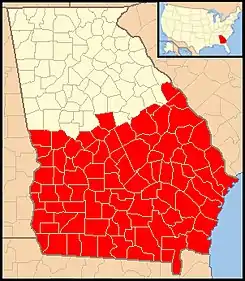 La diócesis tiene 95 928 km² y extiende su jurisdicción sobre los fieles católicos de rito latino residentes en 90 condados de la parte meridional del estado de Georgia: Appling, Atkinson, Bacon, Baker, Ben Hill, Berrien, Bibb, Bleckley, Brantley, Brooks, Bryan, Bulloch, Burke, Calhoun, Camden, Candler, Charlton, Chatham, Chattahoochee, Clay, Clinch, Coffee, Colquitt, Columbia, Cook, Crawford, Crisp, Decatur, Dodge, Dooly, Dougherty, Early, Echols, Effingham, Emanuel, Evans, Glascock, Glynn, Grady, Harris, Houston, Irwin, Jeff Davis, Jefferson, Jenkins, Johnson, Jones, Lanier, Laurens, Lee, Liberty, Long, Lowndes, Macon, Marion, McIntosh, Miller, Mitchell, Montgomery, Muscogee, Peach, Pierce, Pulaski, Quitman, Randolph, Richmond, Schley, Screven, Seminole, Stewart, Sumter, Talbot, Tattnall, Taylor, Telfair, Terrell, Thomas, Tift, Toombs, Treutlen, Turner, Twiggs, Ware, Washington, Wayne, Webster, Wheeler, Wilcox, Wilkinson y Worth.