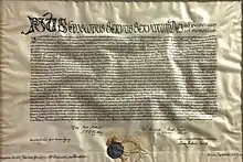 Bula «In apostolici muneris», exhibida en el Museo de Arte Religioso de Sonsón.