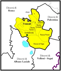 La diócesis incluye las ciudades de Frascati, Monte Porzio Catone, Colonna, Monte Compatri, Rocca Priora, Rocca di Papa, Grottaferrata y parte de las afueras al sureste de Roma.