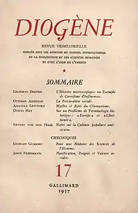 Díogenes ha sido fundada en 1952 por Roger Caillois[3] y su idioma original de publicación es el francés; se publica una traducción al inglés al cabo de un año.[4]