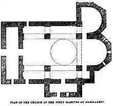 Durante el reinado de Justino II (565–574), debido a un cambio en la liturgia, el diaconicón y la prótesis llegaron a ubicarse en ábsides separados en el extremo este del Santuario. Antes de ese momento sólo había un ábside.