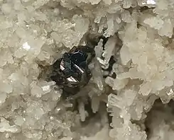 ![]() Diaforita y calcita. Mina Neue Hoffnung Gottes, Bräunsdorf, Freiberg, Erzgebirge,Sajonia (Alemania). Campo de imagen 3 cm. | ||