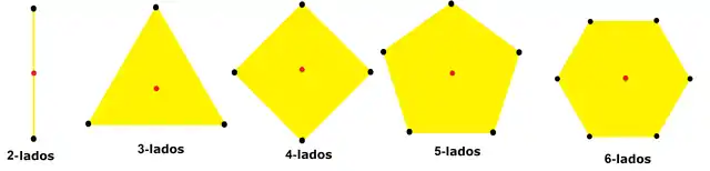 Un politopo complejo regular unidimensional en se representa como , con p vértices. Su representación real es un polígono regular, {p}. Su simetría es p[] o