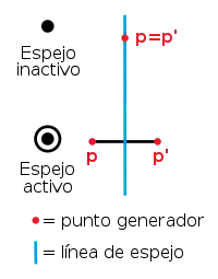 El diagrama de Coxeter-Dynkin puede verse como una descripción gráfica del dominio fundamental de los espejos. Un espejo representa un hiperplano dentro de un espacio euclídeo, esférico o hiperbólico de una dimensión dada. En espacios 2D, un espejo es una recta, y en 3D un espejo es un plano.