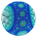 ![]() Muchos grupos de Coxeter en geometría hiperbólica pueden extenderse de los casos euclídeos como una serie de soluciones hiperbólicas. | |