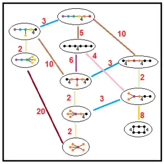 - Los grupos bifurcados Dn y En también están etiquetados con un superíndice [3a,b,c] donde a, b, y c son los números de segmentos en cada una de las tres ramas.