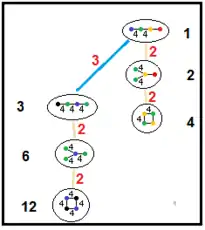 ![]() Subgrupos p[4]2: p=2,3,4... p[4]2 --> [p], índice p p[4]2 --> p[]×p[], índice 2 |