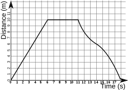 En el estudio de la cinemática unidimensional, los gráficos de posición frente al tiempo (también llamados gráficos de distancia-tiempo, o gráficos d-t) proporcionan un medio útil para describir el movimiento. Las características específicas del movimiento de los objetos se muestran mediante la forma y la pendiente de las líneas.[1] En la figura adjunta, el objeto observado se aleja del origen a una velocidad uniforme de 1.66 m/s durante seis segundos, se detiene durante cinco segundos, y luego regresa al origen durante un período de siete segundos a una velocidad no constante.