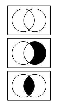 Si todos los elementos de un conjunto son parte de los elementos de otro, se dice que el primero es un subconjunto del segundo o que está incluido en el segundo.[1] En los diagramas de Venn, todas las regiones de superposición posibles deben ser representadas. Y, cuando hay regiones que no contienen elementos (regiones vacías), la situación se indica anulándolas (con un color de fondo distinto).[2]