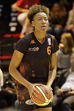 ![]() Diandra Tchatchouang durante un tiro libre con la camiseta del Bourges | ||||||||||||||||||||||||||||||||