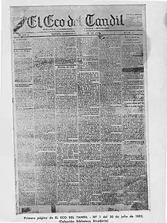 El diario El Eco de Tandil fue fundado el 30 de julio de 1882 por el boticario Juan S. Jaca siendo actualmente el cuarto diario más antiguo de la Argentina detrás de La Nación, La Prensa y La Capital de Rosario y el décimo de América Latina.
