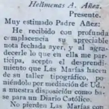 Como miembro de la sociedad católica de Maracaibo “Las Marías”, propuso editar un periódico religioso, utilizando los antiguos equipos de “El Fonógrafo”. Así se instaló la que luego se llamaría imprenta "Las Marías”. Puso toda su experiencia en la redacción y edición del periódico, un semanario de cuatro páginas que bautizó como “El Bien del Pueblo”. Dado el carácter conservador de la sociedad de entonces, con muy reducidos espacios para la mujer, su nombre no aparecía en el periódico. Todos los créditos reposaron sobre la firma de Monseñor Helímenas Añez, aunque fuera ella la periodista iniciadora, la redactora y la impresora de la hoja semanal.[8][9]