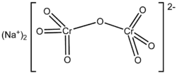 El dicromato de sodio es un compuesto químico de fórmula Na2Cr2O7. Por lo general, sin embargo, la sal se presenta en forma de dihidrato Na2Cr2O7 · 2 H2O. Prácticamente todo el mineral de cromo se procesa a través de la conversión a dicromato de sodio. De esta forma, muchos millones de kilogramos de dicromato de sodio son producidos anualmente.[2] En cuanto a reactividad y apariencia, el dicromato de sodio y el dicromato de potasio son muy similares. La sal de sodio, sin embargo, es alrededor de veinte veces más soluble en agua que la sal de potasio (49 g/L a 0 °C) y su peso equivalente también es menor, lo cual es a menudo deseable.[3]