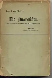 Die Anarchisten: Kulturgemälde aus dem Ende des XIX Jahrhunderts (Los Anarquistas: Una Imagen de la Civilización al Final del Siglo XIX) es un libro del escritor anarquista John Henry Mackay publicado en alemán e inglés en 1891.[1] Es la obra más conocida y más leída de Mackay, y lo hizo famoso de la noche a la mañana. Mackay dejó en claro en el subtítulo del libro que no tenía la intención de ser una novela, y se quejó cuando fue criticado como tal,[2] declarando en cambio propaganda. Una traducción al yiddish de Abraham Frumkin fue publicada en Londres en 1908 por el colectivo Arbeter Fraynd, con una introducción del editor de la revista, el destacado anarquista londinense Rudolf Rocker. También se tradujo al checo, holandés, francés, italiano, ruso, español y sueco.[3] Die Anarchisten había vendido 6.500 copias en Alemania en 1903, 8.000 en 1911 y más de 15.000 en el momento de la muerte del autor en 1933.[4]