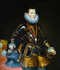 ![]() Diego Gómez de Sandoval, Conde de Saldaña. Pintura de Juan Pantoja de la Cruz, Palacio Nacional de Sintra, Portugal. | ||