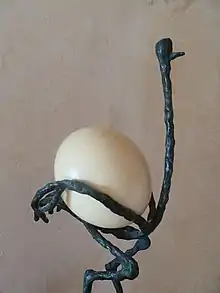 Sus esculturas son a veces divertidas o pintorescas. Por ejemplo, L' Autruche (El avestruz)[8] debe su existencia al hecho de que su amigo el doctor Binet, no sabía qué hacer con un huevo de avestruz, se lo dio a Diego que la integró dentro de una avestruz que soñó y esculpió. Los animales adornaron e enriquecieron con regularidad sus obras, como la Table arbre à la souris (Mesa árbol con el ratón),[8] que perteneció a la colección de Jean-Paul Binet, un eminente cirujano que era un gran amigo y mecenas de Diego Giacometti. Junto con los animales familiares, le gustaba tener animales que simbolizasen la fuerza, el poder y la belleza, como cabezas de leones, lobos y caballos.