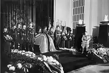 - Peltz es la tercera persona en el lado izquierdo del ataúd detrás de Adolf Galland y Walter Oesau.