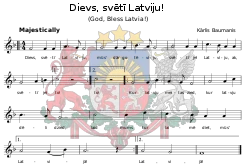 Dievs, Sveti Latviju (español: Dios bendiga a Letonia) es el himno nacional de Letonia. Compuesto por Kārlis Baumanis en 1873 y adoptado oficialmente como himno en 1920.