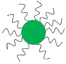 A diferencia de la electrostática, las suspensiones estabilizadas estéricamente se basan en la interacción física de las cadenas de polímero unidas a la superficie de las partículas para mantener la suspensión estabilizada; las cadenas de polímero adsorbidas actúan como un espaciador para mantener las partículas suspendidas separadas a una distancia suficiente para evitar que la atracción de Hamaker domine y saque las partículas de la suspensión. Normalmente, los polímeros se injertan o se adsorben sobre la superficie de la partícula. Con los polímeros injertados, la columna vertebral de la cadena del polímero se une covalentemente a la superficie de la partícula. Mientras que un polímero adsorbido es un copolímero compuesto de región liofóbica y liofílica, donde la región liofóbica se adhiere de forma no covalente a la superficie de la partícula y la región liofílica forma el límite o espaciador estérico.