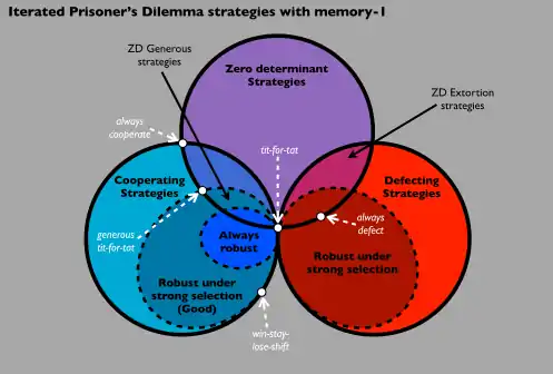 Sin embargo, la TFT es una estrategia bastante implacable y en dilemas importantes del mundo real, una estrategia más indulgente puede tener sus propias ventajas. Esta estrategia se conoce como Generous-tit-for-tat (GTFT). [36] Esta estrategia siempre corresponde a la cooperación con la cooperación y, por lo general, responde a la deserción con la deserción. Sin embargo, con cierta probabilidad, GTFT perdonará la deserción del otro jugador y cooperará. En un mundo de errores en la acción y la percepción, tal estrategia puede llevar a un equilibrio de Nash y evolutivamente estable. Cuanto más beneficiosa sea la cooperación, más indulgente puede ser GTFT sin dejar de resistir la posición de los desertores.