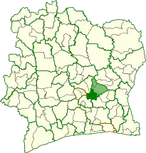 Se encuentra ubicado en el centro-este del país, al este de la capital nacional, Yamusukro, y al oeste del río Komoé.