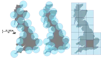 Es posible definir la dimensión del recuento de cajas usando bolas, ya sea con el número de recubrimiento o el número de empaquetamiento. El número de recubrimiento es el número "mínimo" de bolas de radio ε requerido para recubrir el fractal (es decir, de manera que su unión contenga el fractal).
