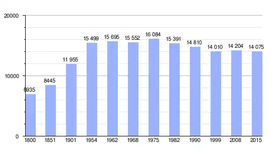 Gráfica de evolución demográfica de Dinan entre 1800 y 2015 |