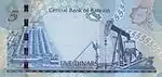 5 Dinares | Azul | 154 x 74 mm | دينار ٥ - Casa de Shaikh Isa en Muharraq - Fuerte de Riffa - مصرف البحرين المركزي | 5 - FIVE DINARS - Pozo petrolífero - Almacenes de la empresa Alluminium Bahrain - Central Bank of Bahrain | ![]() |