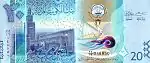 20 Dinares | Verde | 160 x 68 mm | عشرون دينار ٢٠ - Fuerte Rojo en Al Yahra - cañón - Escudo de armas - بنك الكويت المركزي | 20 - TWENTY DINARS - Edificio del Banco Central - Murallas de la Ciudad de Kuwait - CENTRAL BANK OF KUWAIT - WE SEEK GOD'S ASSISTANCE |