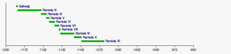 La Dinastía XX o Vigésima Dinastía (c. 1190 a 1070 a. C.) la funda Sethnajt, el general de los ejércitos de Egipto que toma el poder apartando a los últimos aspirantes al trono de la familia de Ramsés II.
