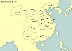 ![]() Extensión territorial de la dinastía Xin | ||||||||||||||||||||||||||||||||||