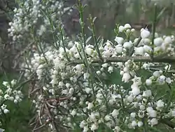 Es un arbusto de hasta 1 m de altura, prácticamente desprovisto de hojas, protegido por largas espinas opuestas, que crecen sobre el tallo. Las flores se hallan agrupadas en las axilas de las espinas y son semejantes a campanitas de color blanco y, a menudo, son hediondas. El fruto es una cápsula tricoca.